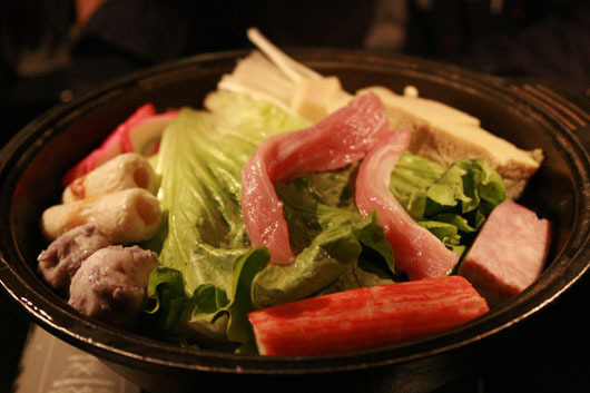 很多菜都直接放在桌子旁邊的木頭地板上...